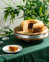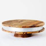 This artisan cake plate will surely make a charming addition to your kitchen or dining room. Perfect for serving and displaying an array of homemade confections. This piece has been made entirely by hand from reclaimed wood and is decorated with a galvanized metal band that offers a sleek contrast to the wood’s natural sheen.