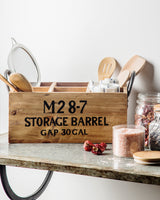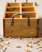 The Madulkelle storage crate is a wonderful way to add a fun industrial accent to household organization. This piece has been crafted by hand from reclaimed wood to resemble an old-fashioned liquor crate. With six individual bins and cast-iron handles, the Madulkelle crate can serve as a mobile bar or fixed storage item.
